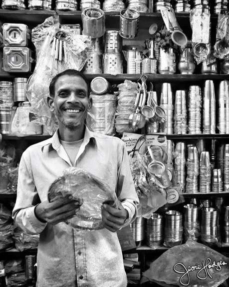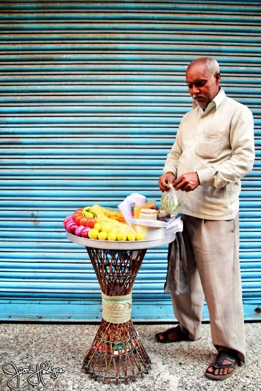 Once upon a time, my husband and I went for an afternoon stroll through Kotla Mubarkpur and we met: a guy selling streetside snacks, a guy in a magic cave of kitchen supplies, a Muslim mattress seller with all your sleep needs, a smiley rickshaw driver, a shy schoolgirl, and a slightly crazy vegetable seller.