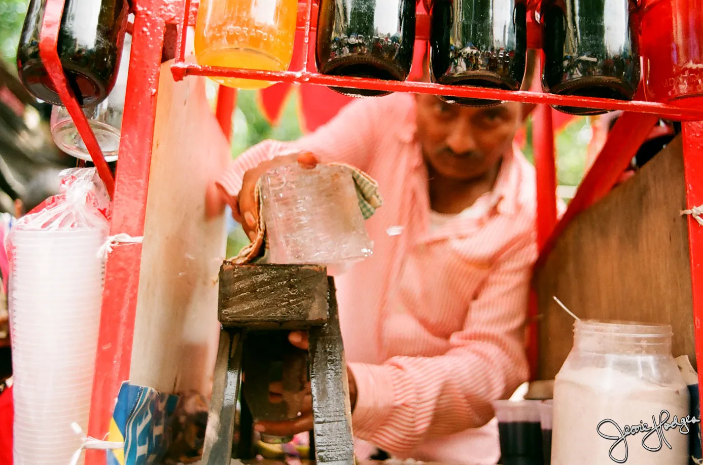 Summer in Delhi. When the air is oppressive and sweat pours out of every pore. When even a cold shower isn’t cold because the water tanks on the roof have boiled in the sun. When your only chance for respite is a sweet lime soda, a mango shake or a chuski. Just be careful of the ice.